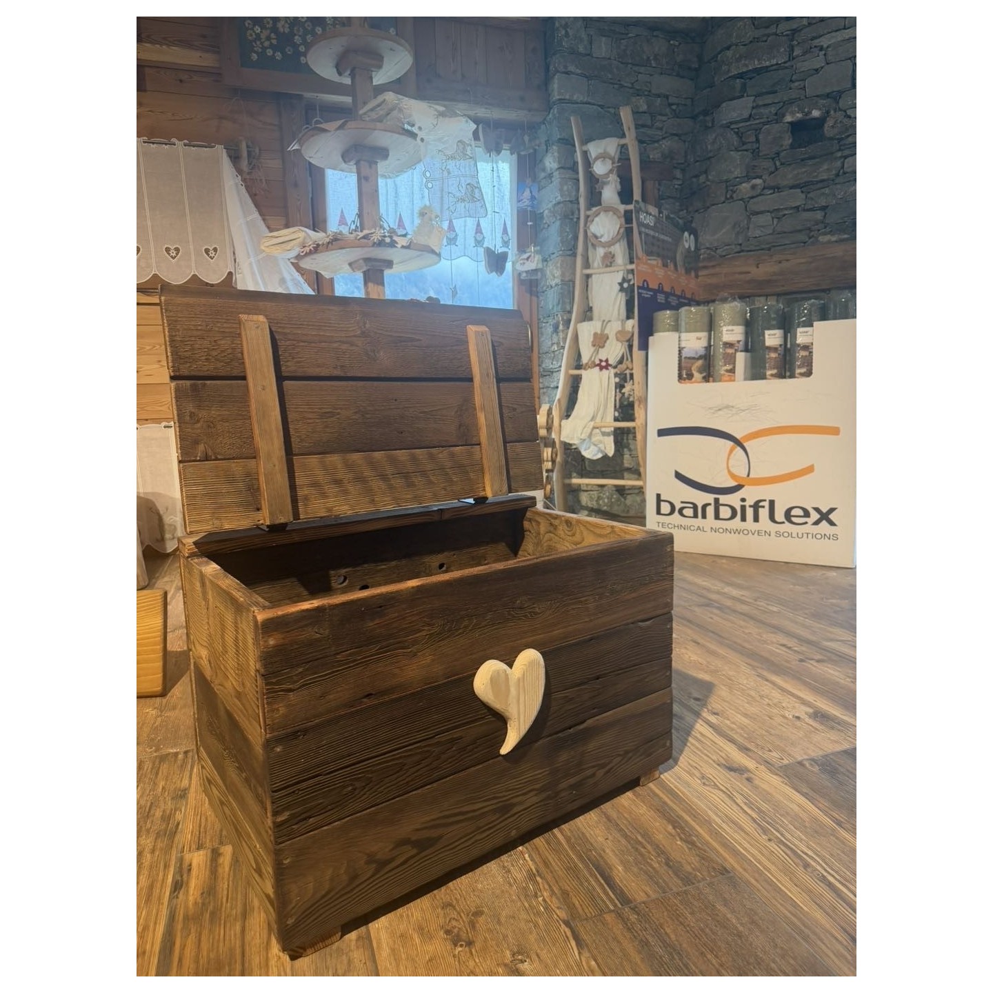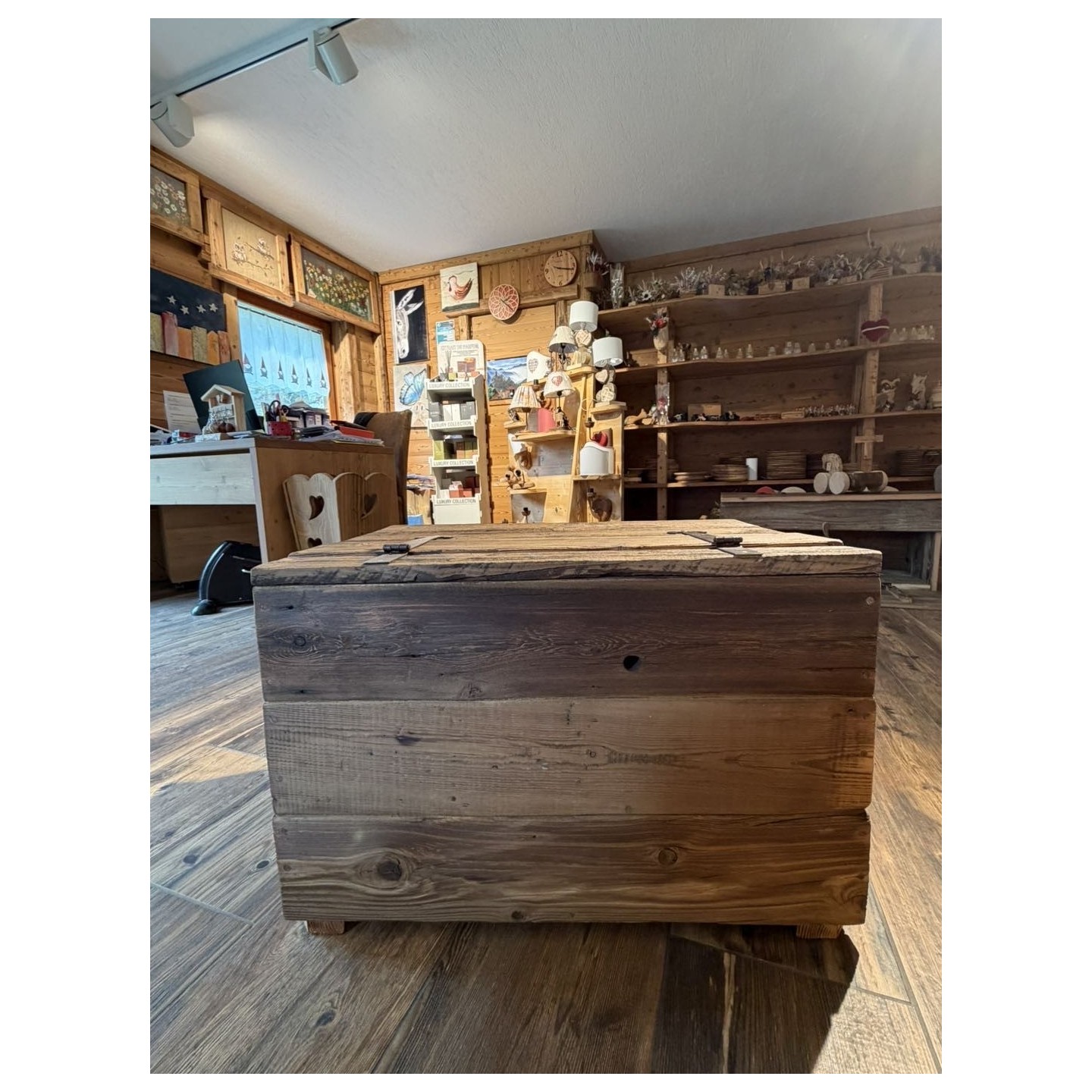 Cassa panca in legno vecchio, unisce praticità e stile in un unico complemento d'arredo, perfetta per organizzare gli spazi senza rinunciare al design.